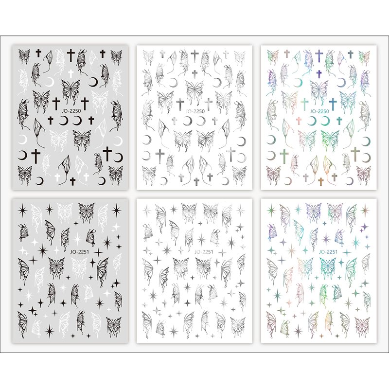 6 Sheets Butterfly Nail Art Stickers Laser Silver Butterflies Designs Self Adhesive Decals Cute Nail Art Design Decals Black White Butterflies Nail Decals for Nail Art DIY Manicure Decoration