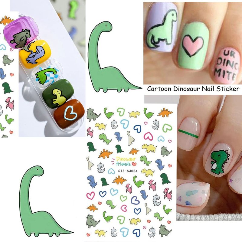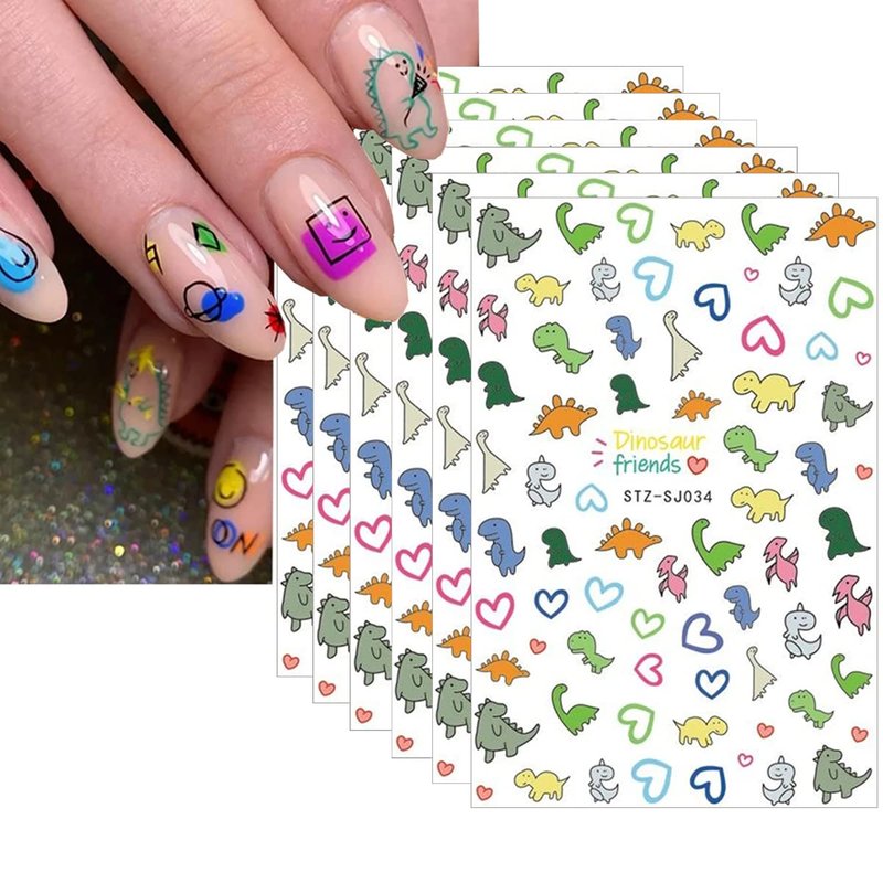 - Kawaii Nail Stickers for Girls: 6 sheets / set cartoon nail sticke set, These kawaii stickers have cute dinosaurs, hearts,cartoon graffiti pattern designs, which are irresistible nail art accessories for small girls.