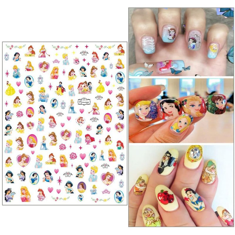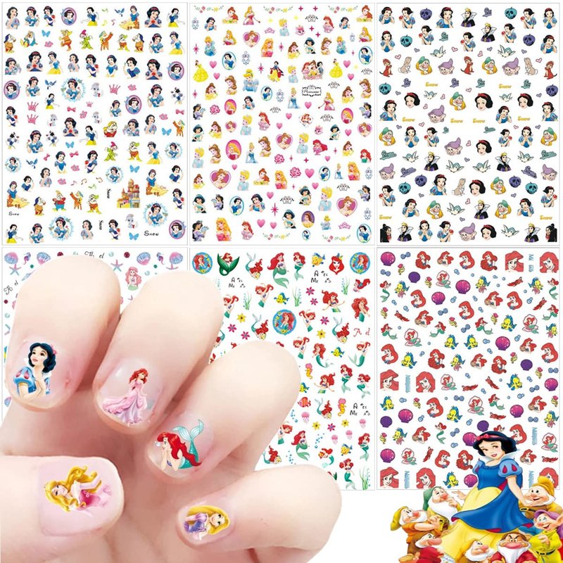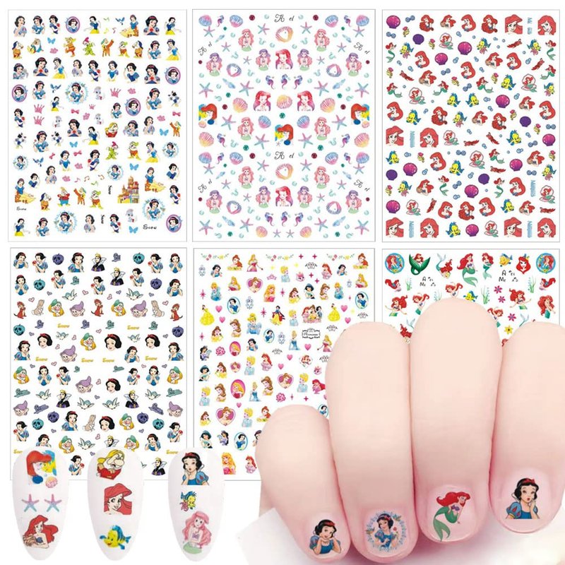 6 Sheets Cute Nail Art Stickers Cartoon Nail Decals 3D Self Adhesive Designer Nail Stickers Nail Art Supplies Mermaid Nail Stickers for Women Girls Nail Decoration Accessory (Princess)