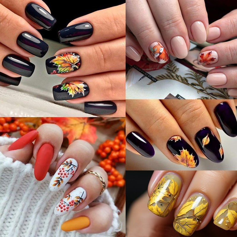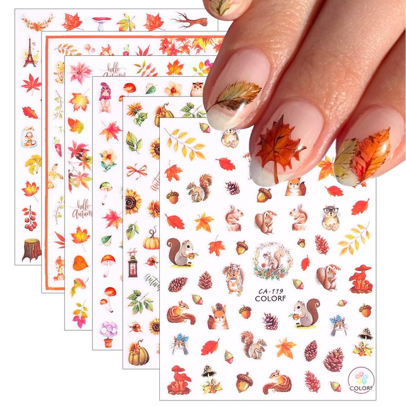 - Easy to Use:Autumn nail sticker for acrylic nail supplies is self-adhesive, easy to use. Just stick nail decals on your nails. They stay on for a long time without peeling off your nails.