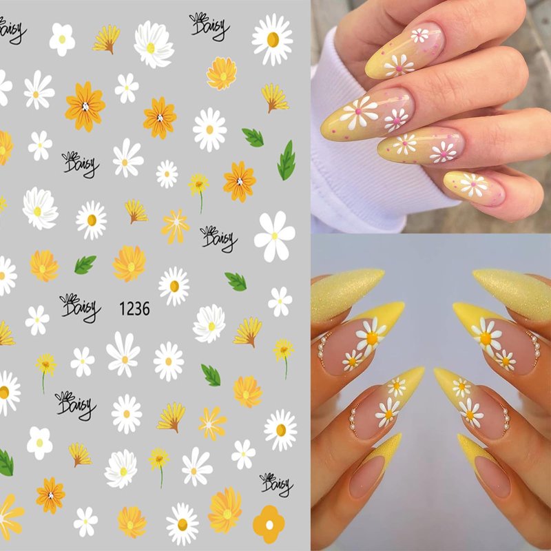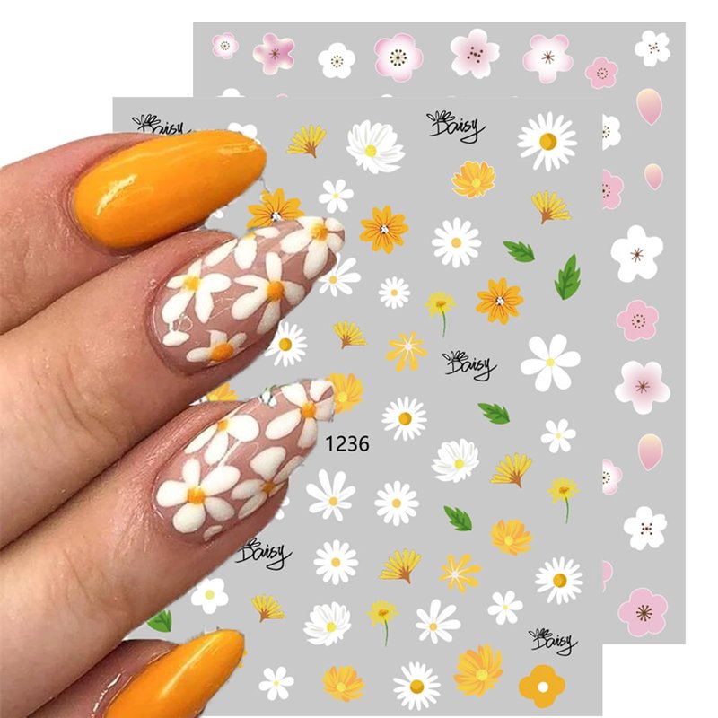 6 Sheets Flower Nail Art Sticker Decals, Charming Daisy Nail Stickers Spring Nail Decals for Nail Art Cute Floral Design Nail Supplies Elegant Self Adhesive Nail Art Decals for Women Nail Decoration