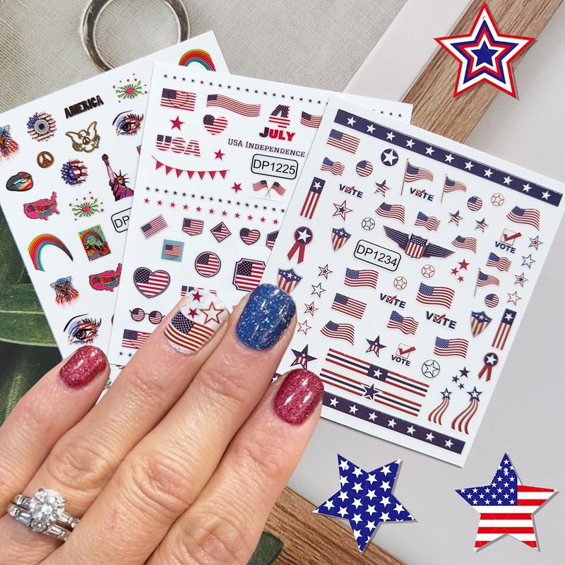 - Independence Day Nail Design: You will get 6 sheets 3d self-adhesive 4th of July nail art stickers, Fourth of July Nail Decals, bring you more DIY USA holiday manicure decorations choices.