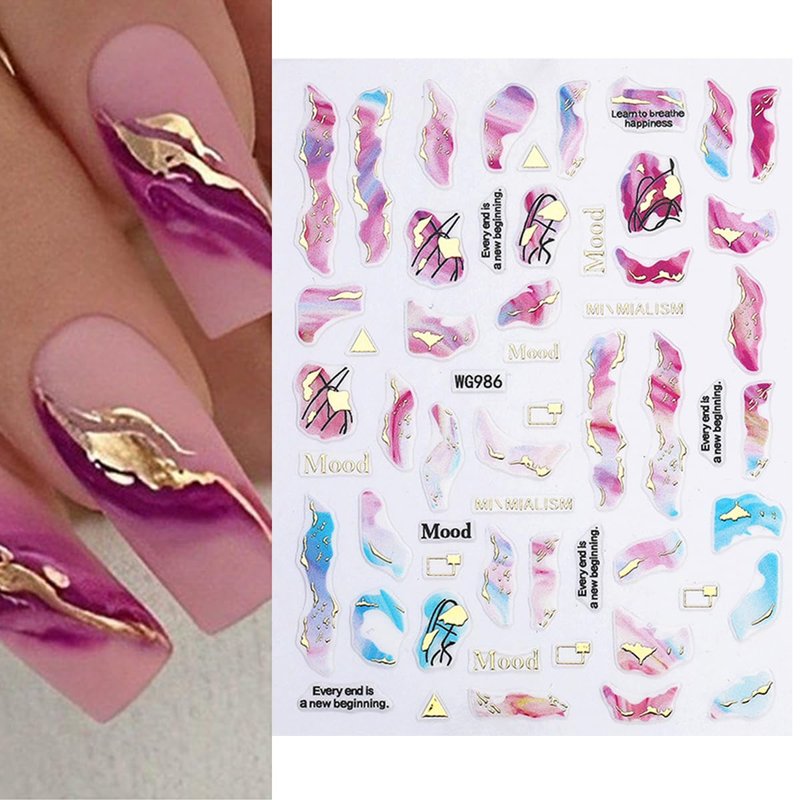- 【Nail Art Decals Design】Gold marble nail stickers, the gold foil matches the colorful marble patterns, unique and personalized, bring an unprecedented aesthetic experience, can make your nails become more beautiful and attractive, instantly enhance your nail charms.