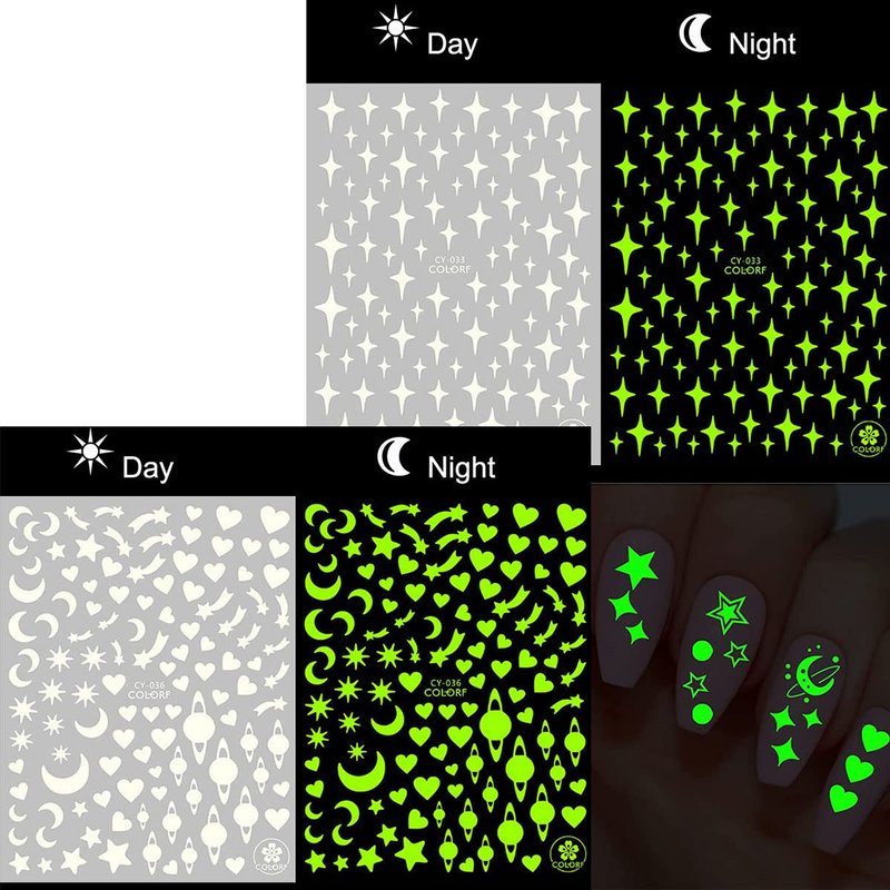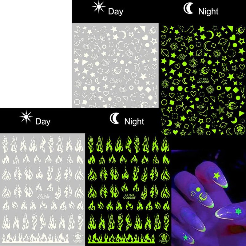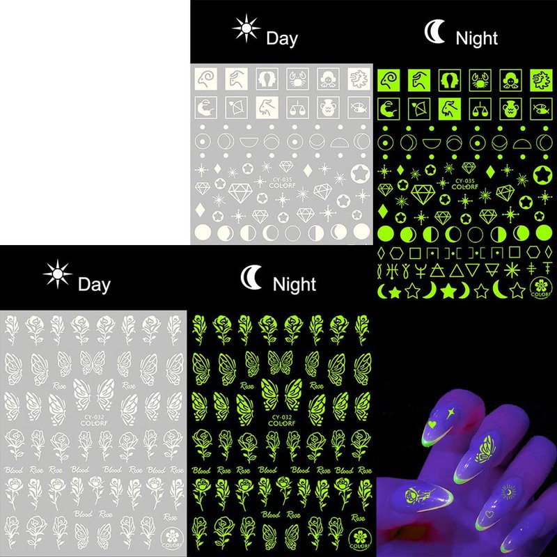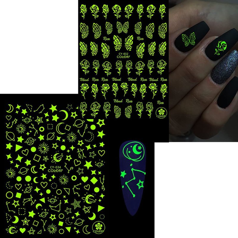 - Unique Style: Fluorescent nail stickers will appear white during the day, glow in the dark. It makes your nails shinny sparkle glow in dark, bring you distinctive nails.