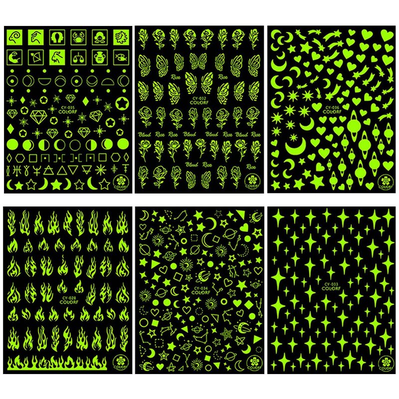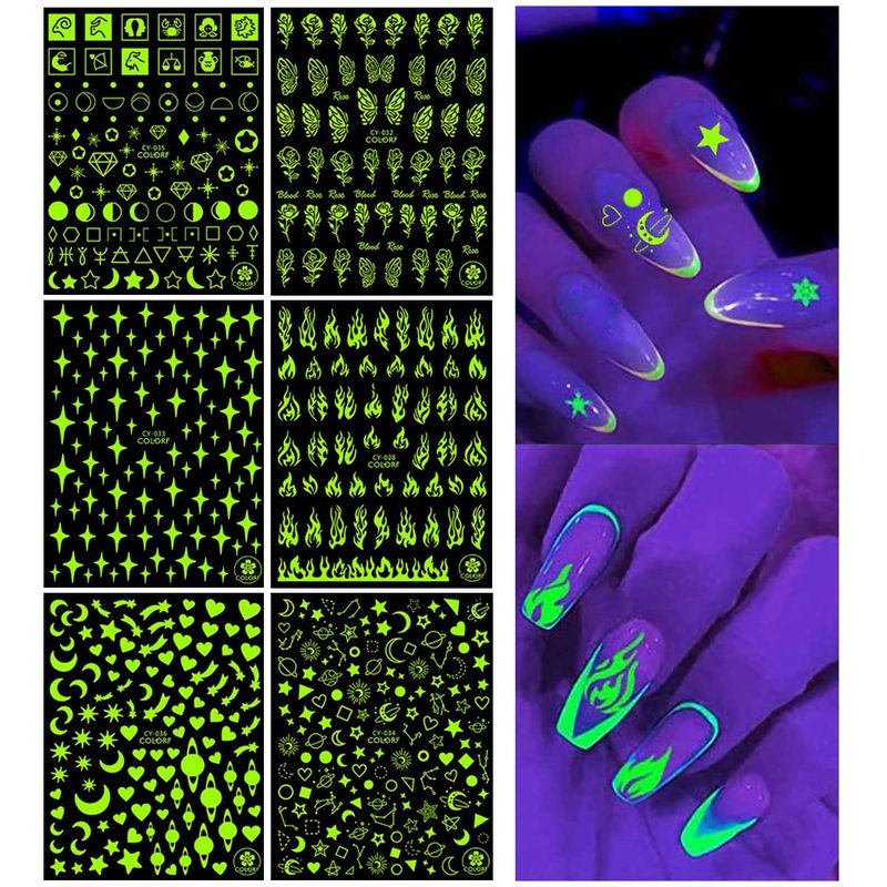 Packing: 6 Sheets/Set Luminous Nail Art Decals