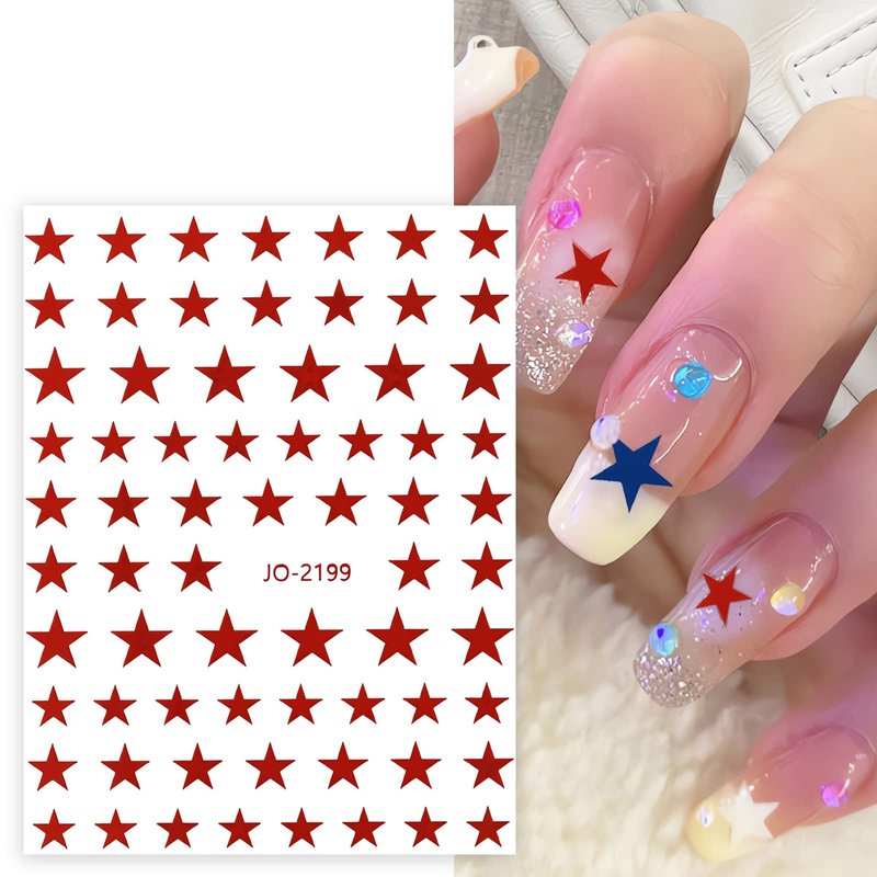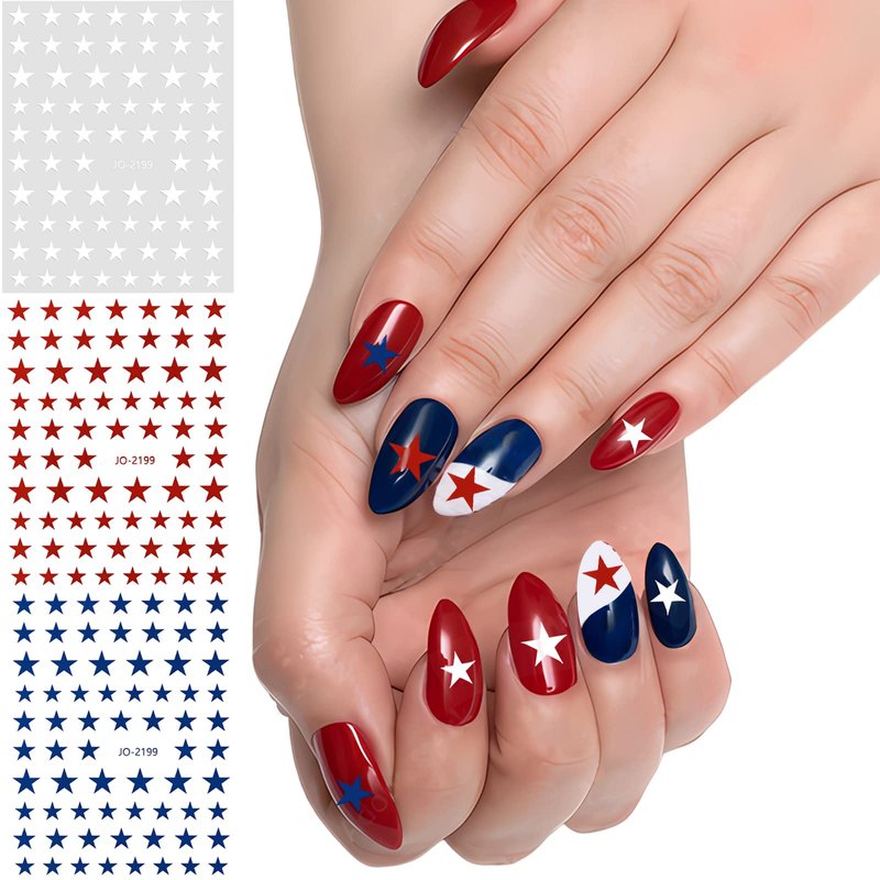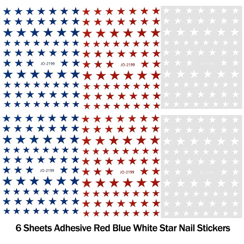 - Star Nail Stickers: 6 sheets star nail decals in classic red, blue and white 3 colors, 2 sheets each color, suitable for most natural and fake nails, which can be used to design your patriotic nail style.