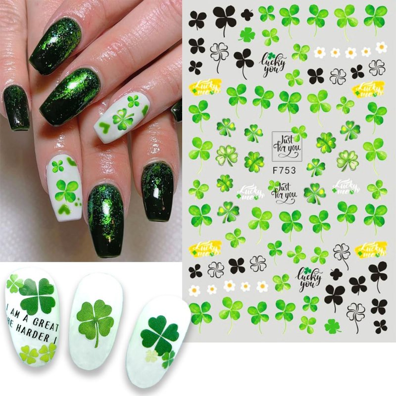 - Easy to Use: Self-adhesive designs make these shamrock nail art stickers sticking well on your nail. Just use tweezers to peel and stick it on your nail. Apply a top coat to make the stickers last longer.