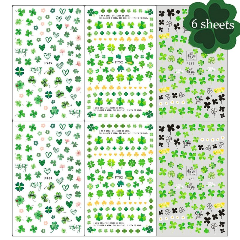 - St. Patrick's Day Design: You will get 6 sheets 3d self-adhesive St. Patrick's Day nail stickers, Green Shamrocks Nail Decals, bring you more DIY holiday manicure decorations choices.