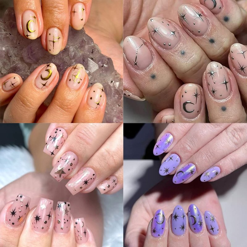 - Health Safety: Our sun moon star nail decals made of safe material, self-adhesive and easy to stick, it can be stick directly on nails which won't hurt your beautiful nails, you can also use nail gel to cover to make the stickers last longer and shinier.