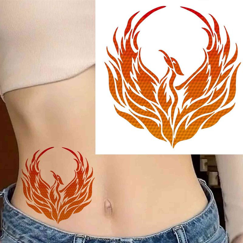 6 Sheets Temporary Fake Tattoos for Men Adults Flying Phoenix Fire Bird Abstract Rising Wing Temporary Fake Tattoo for Women Neck Arm Chest for Woman