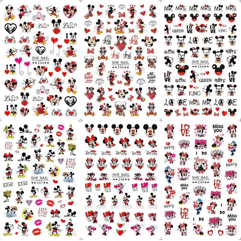 Package Contents: 6 sheets cute cartoon nail decals.