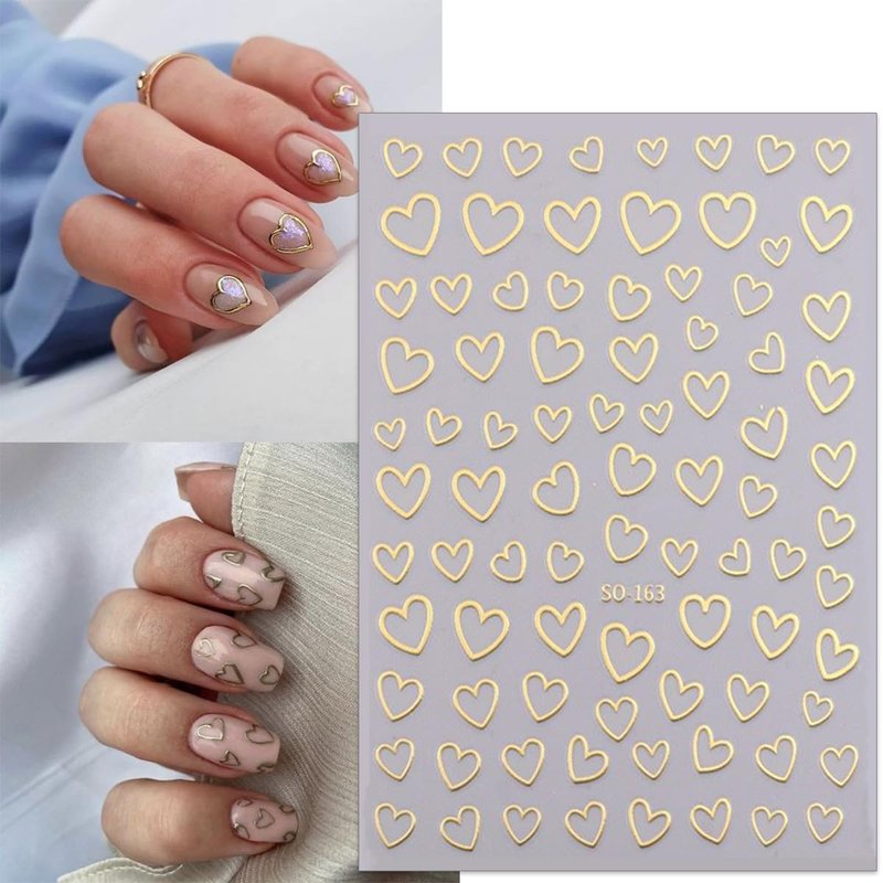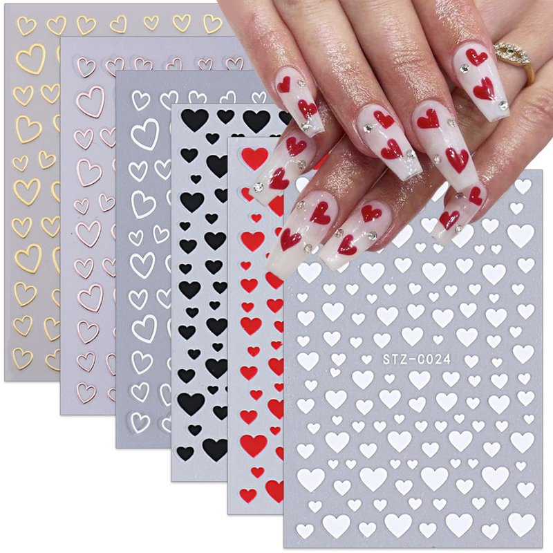 - 👄Valentines Day Nail Art Stickers Set :You will get 6 sheets Valentine's day theme self-adhesive heart nail stickers, gold silver nail stickers decals are the perfect fashion accessories.Large number of different patterns for you to use and replace in daily life,heart nail decals are full of sensuality and elegance, Various charming patterns bring you a different mood.