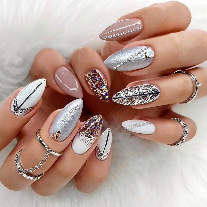 Product delivery packing list: 6pcs silver nail jewelry accessories