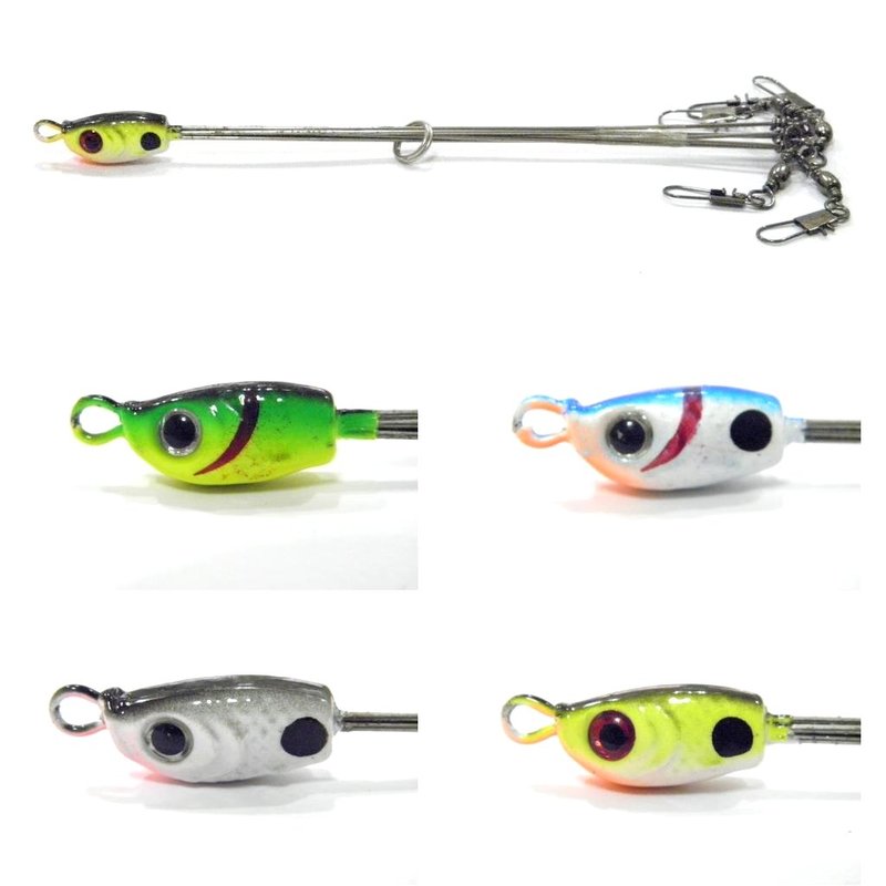 - Rig is 1/2 oz without hooks, 6 1/4 inch stainless steel leg