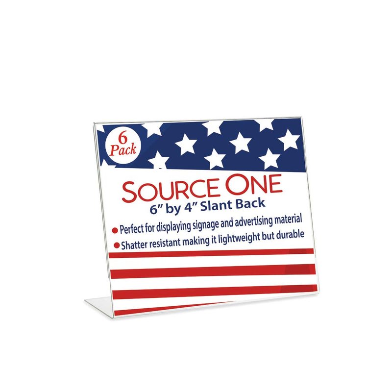 Our 6" by 4" landscape Slant back is perfect for displaying advertising or signage in a clear and crisp manner. Sits nicely on any countertop and can be displayed in your office, store, home, or business. Made in America from our clear acrylic plexiglass, stop by one of our Warehouses located in Arizona, Alabama, and California.