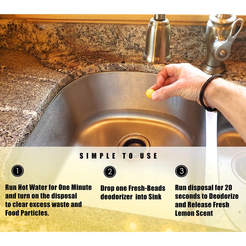 - VALUE PACK: 60 single use beads included inside one package. Deodorizes your kitchen sink and leaves behind a fresh lemon scent. Sink Cleaner crusher