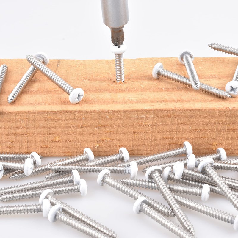 - White Lattice Screws with Twin Fast Thread (2 threads on the screw shaft drive screw in half of the time)