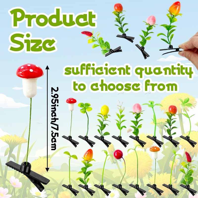 bean sprout hair clips are designed in botanical style,flower hair accessories are rich in style,novel and fashionable,elegant and lovely,bean sprout hair clips can meet your different decorative needs,you can wear mushroom hair clips for girls to participate in carnivals,Thanksgiving Day,Christmas Day,Children's Day and other events,these flower hair clips are also a perfect gift for women.