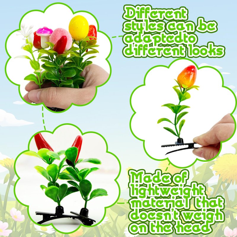 60 Pcs Bean Sprout Hair Clips,Funny Plant Hairpins,Mixed Style Flower Mushroom Little Grass Barrette Hair Accessories for Women Girl School Home Party Christmas