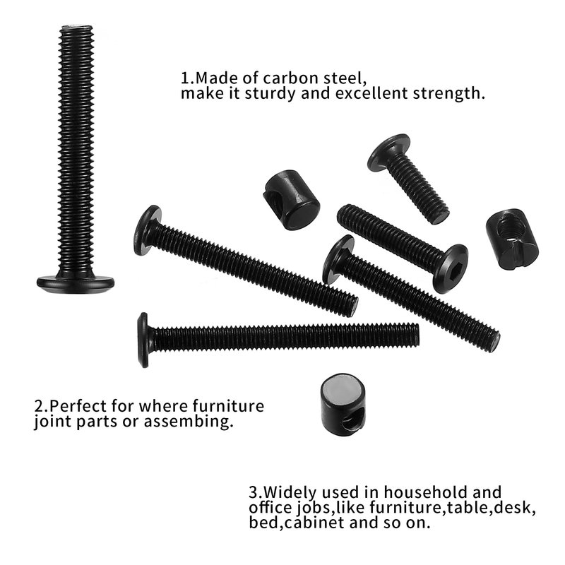 - Widely Used: M6 barrel bolt nut kit can be used for various furniture, such as cribs, cabinets, wardrobes, sofas, bunk beds, etc., can be well connected to planks, wood, kitchen countertops, also suitable for communication equipment, office equipment, ship assembly and other mechanical industries.