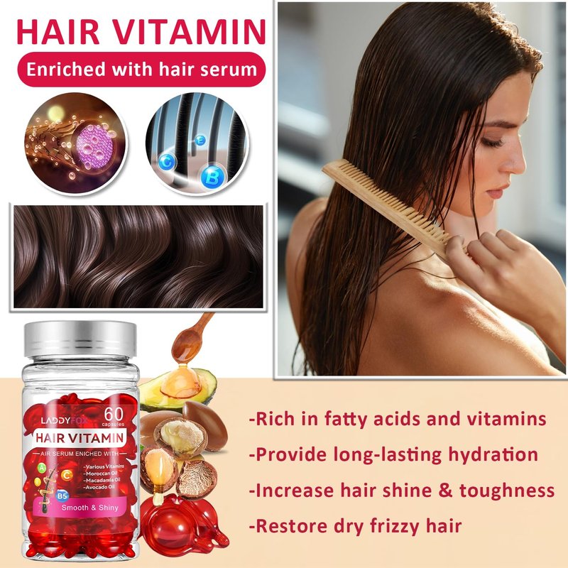 60 Pcs Hair Vitamin Oil Capsule, Hair Treatment Serum Enriched with Moroccan Oil, Macadamia Oil, Avocado Oil, Vitamins A C E Pro B5, No Rinse and Safe for All Hair