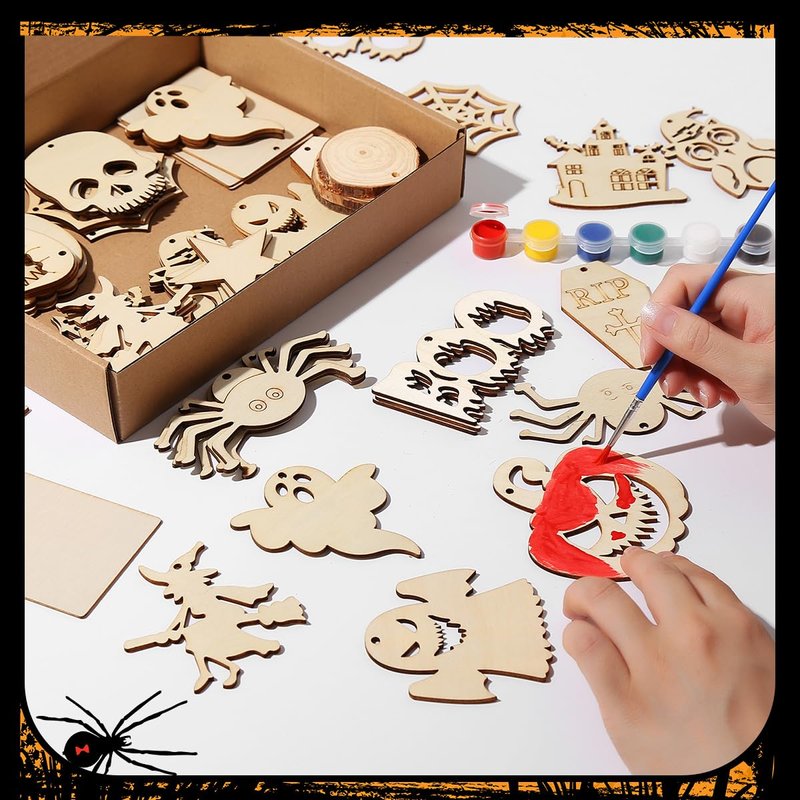 - UNIQUE HALLOWEEN GIFTS - Are you looking for the perfect addition to your Halloween craft supplies? This Halloween DIY Wooden Craft Gift is a fun craft to complete during a Fright Night celebration. Just like the magic of Halloween, eye-catching colors pop out when you paint. Not only will you have fun showing off the colors, but you'll also be able to laugh with family and friends as you create fun characters.