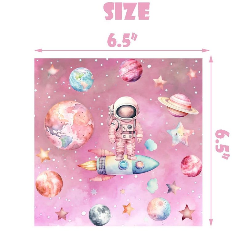 - Size: Outer space paper napkins size is 6.5 inches long by 6.5 inches wide folded, and 13 inches long by 13 inches wide when unfolded