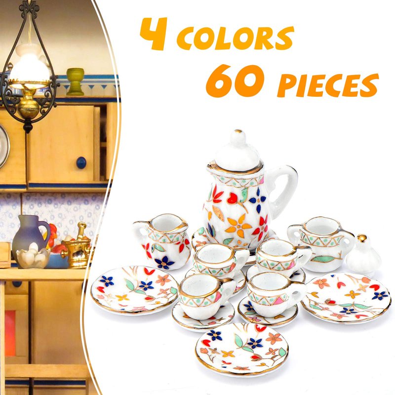- What you will get: you will get 4 sets of miniature porcelain tea cup set of different styles, 60 pieces of porcelain accessories in total, including 4 x teapots, 4 x sugar bowls, 4 x creamers, 16 x dishes, 16 x cups, 16 x saucers