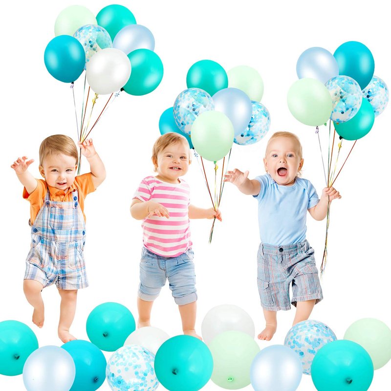 60 Pieces 12 Inch Agate Latex Balloons Confetti Balloons Colorful Balloons for Jungle Baby Shower Wedding Office Birthday Party Supplies (Aqua, Turquoise, Cyan, Mint Green)