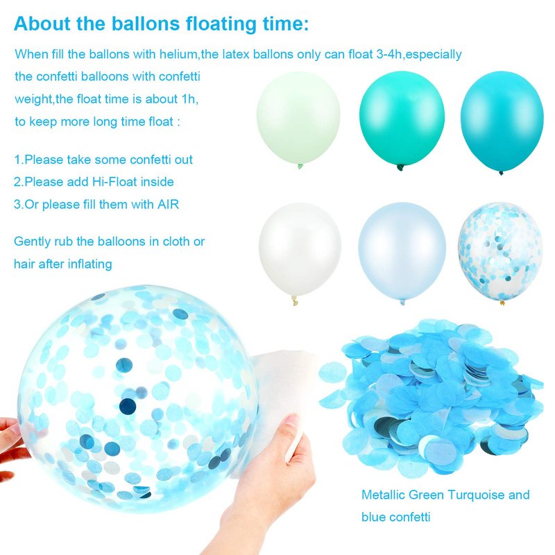 This balloons kit suit for birthday party, winter party, pool, baby shower, bridal shower, wedding, Christmas, dinosaur party and so on, they are fit for balloons bouquet, floral arrangements, home and table decor, photo shoot, party games and more.