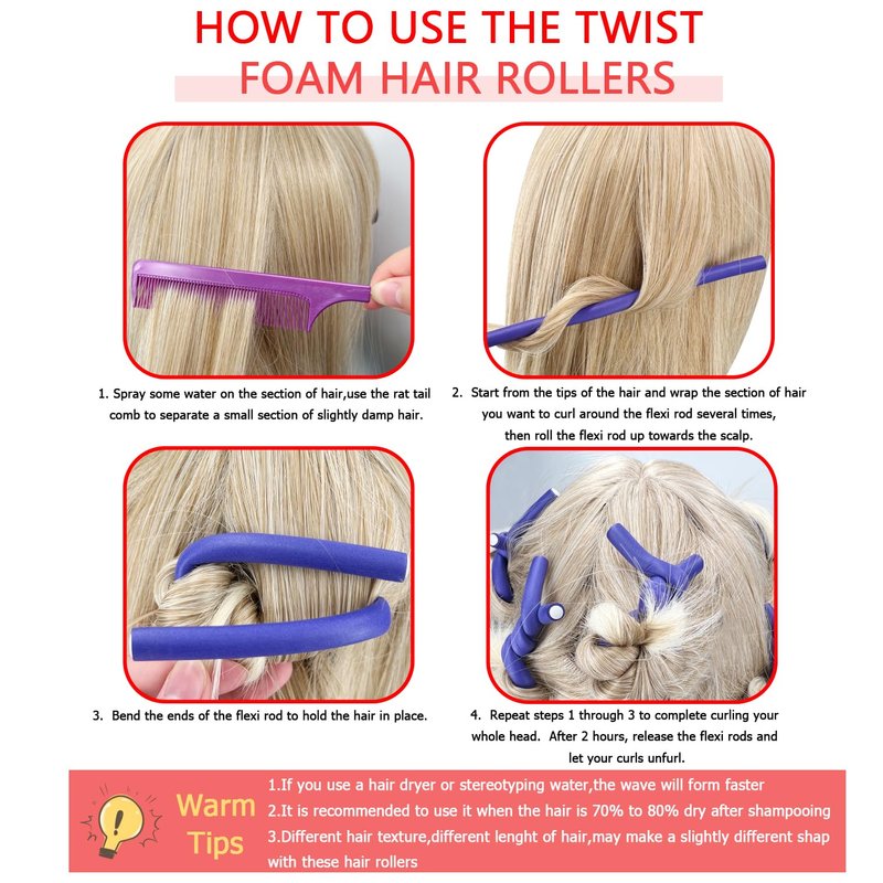 - Soft Foam No Heat Hair Rods Rollers:Our twist hair rods are made of quality foam, soft, flexible, and lightweight, temperature resistant, easy to create curls, can help you make beautiful and natural hair curls easily and quickly, without damaging your hair