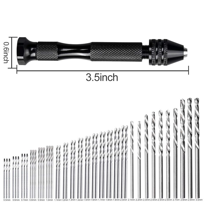 - 【Package Contant】1 piece pin vise hand drill, 48 pieces of micro twist drill bits (0.5-3.0mm), 10 pieces of PCB mini drill bits (0.3-1.2mm), and 1 piece bench vise.