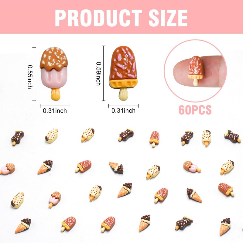 60 Pieces Mini Ice Cream Decor for Dollhouse Accessorie Mini Food Dessert for Crafts Tiny Resin Ice Cream for Dollhouse Mini Kitchen Micro Landscaping Decoration