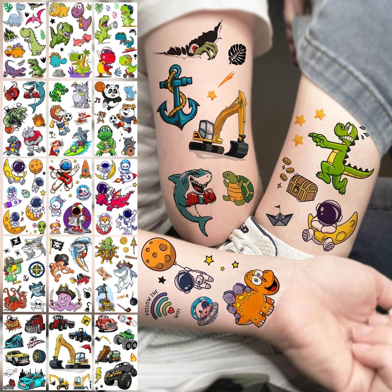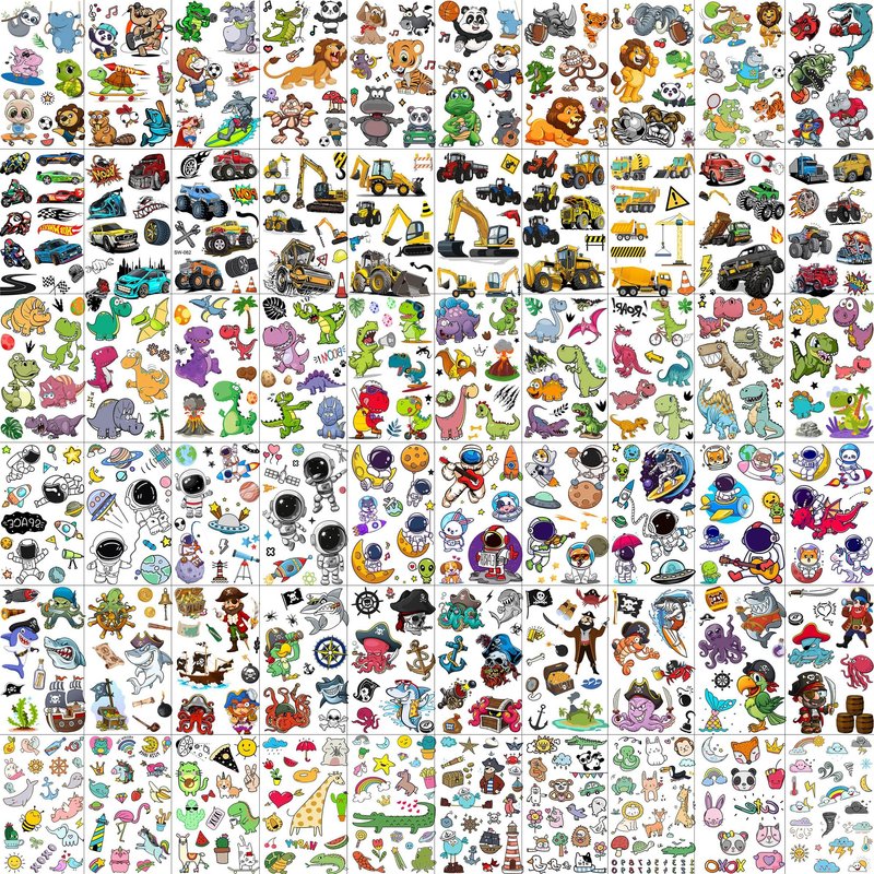 - π[60 Sheets 999+ Patterns Groovy Cartoon Long Lasting Kids Tattoos Temporary] There Are 60 Sheets 999+ Patterns Summer Style Temporary Tattoos For Kids Girls Boys Children Teens, You Can See Engineering Vehicle, Fire Engine, Truck, Builder, Bulldozer, Construction Cars, Dino, Dinosaur, T-Rex, Universe, Astronaut, Outer Space, Planets, Star, Shark, Pirate, Pet, Animals Head, Zoo Bulk Designs In It.