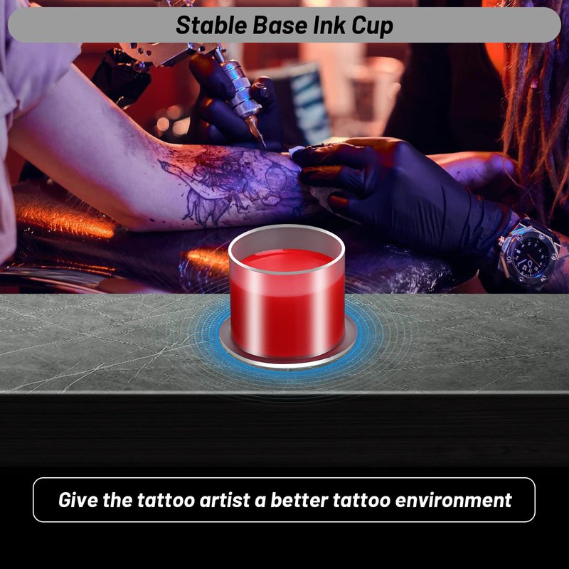 - ✨【Unique Base Design】Jollidecor ink caps for tattooing are designed with wider flat bases than the cups themselves, allowing them to stand independently on the table without an ink cup holder/stand and also prevent ink spills. Compared to those tattoo ink caps with wide cup edge, ours will hold ink more stable, making your tattoo experience worry-free.