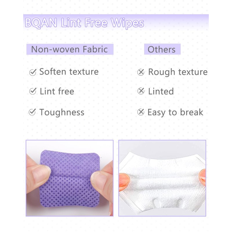 - 【Wide Applications】BQAN Lint Free Wipes can be used for removing the residual glue and preventing the bottle mouth from clogging; cleaning the eyelash tweezers & holder platform when lash extension finished;cleaning nail gel & nail polish removing and wiping; cleaning your face ;cleaning phone surface.