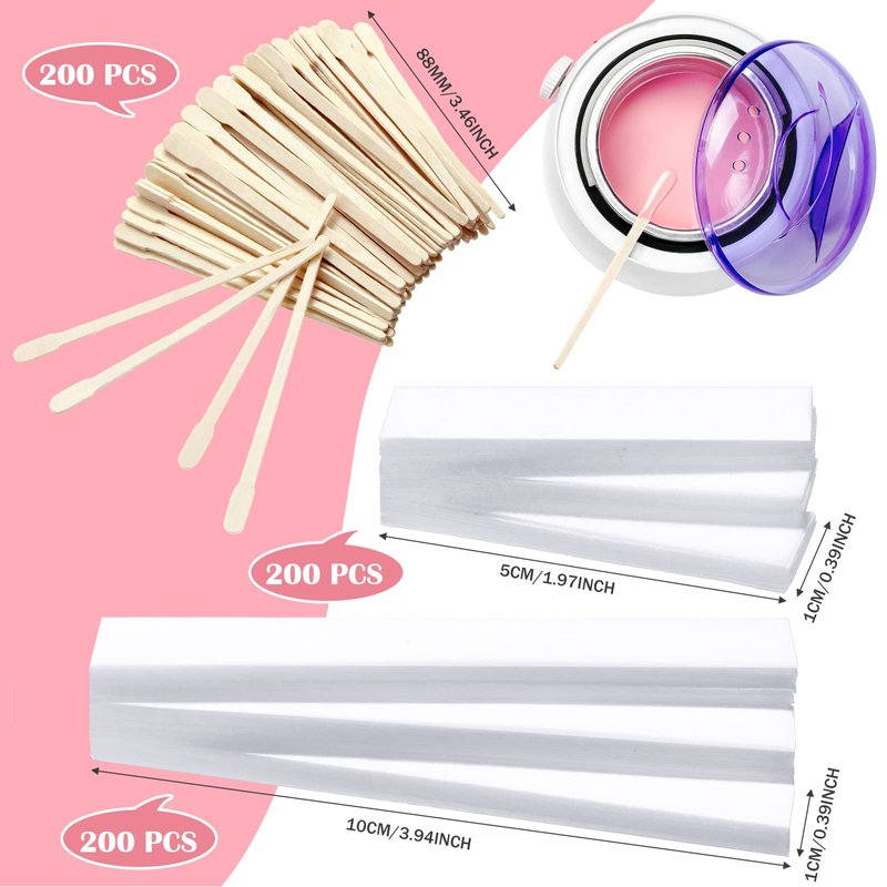 600 Pieces Wax Strips and Wax Applicator Sticks Kit Includes 400 Pieces Eyebrow Waxing Strips White Wax Paper Cloth Strip and 200 Pieces Wooden Smooth Wax Applicator Sticks for Body Skin Hair Removal