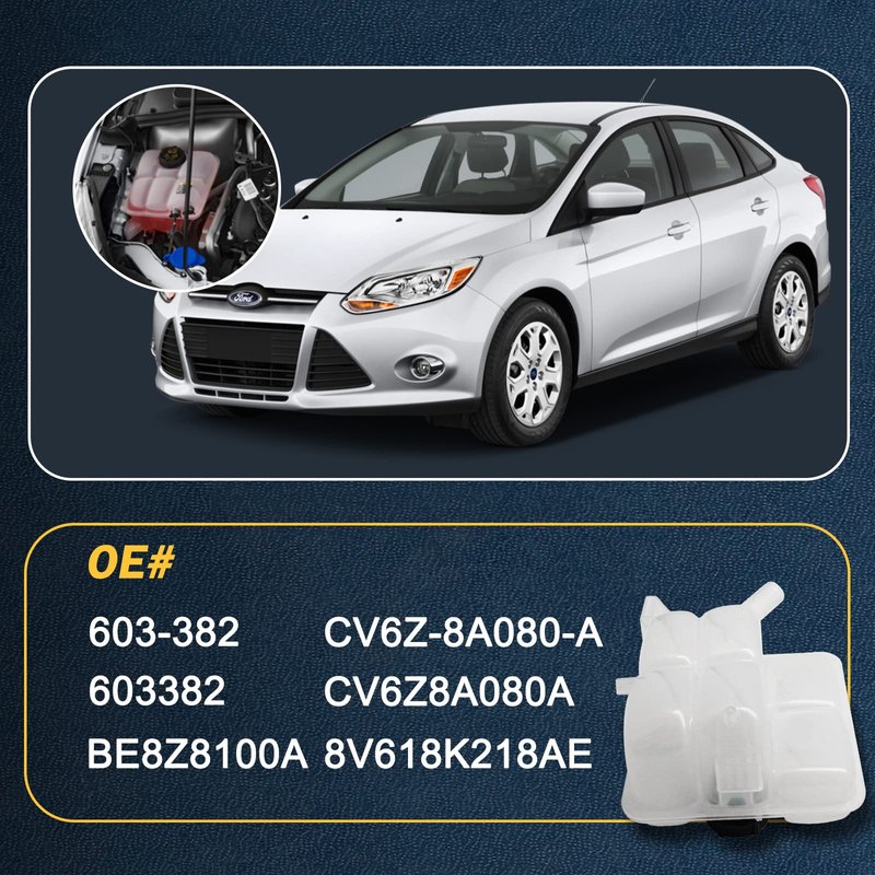 - 【OE#】603-382.【Replace OE#】8V618K218AE, CV6Z8A080A, CV6Z-8A080-A, 603382, BE8Z8100A. Package Included: 1 coolant reservoir + 1 surge cap. (Notice: instruction is not included. Recommended you install under the guidance of professionals.)