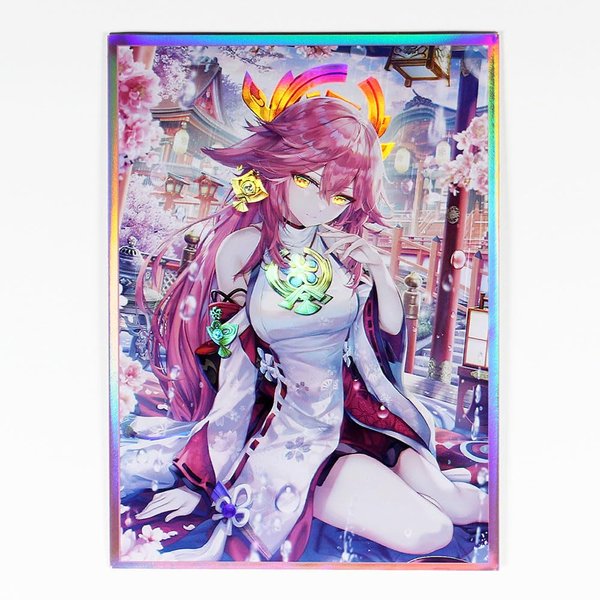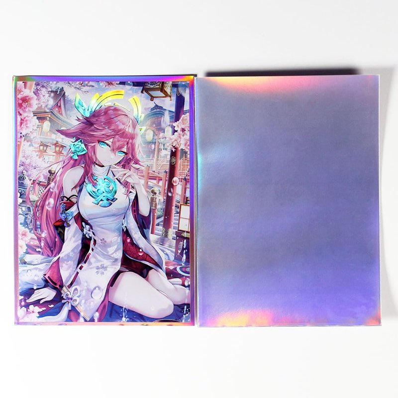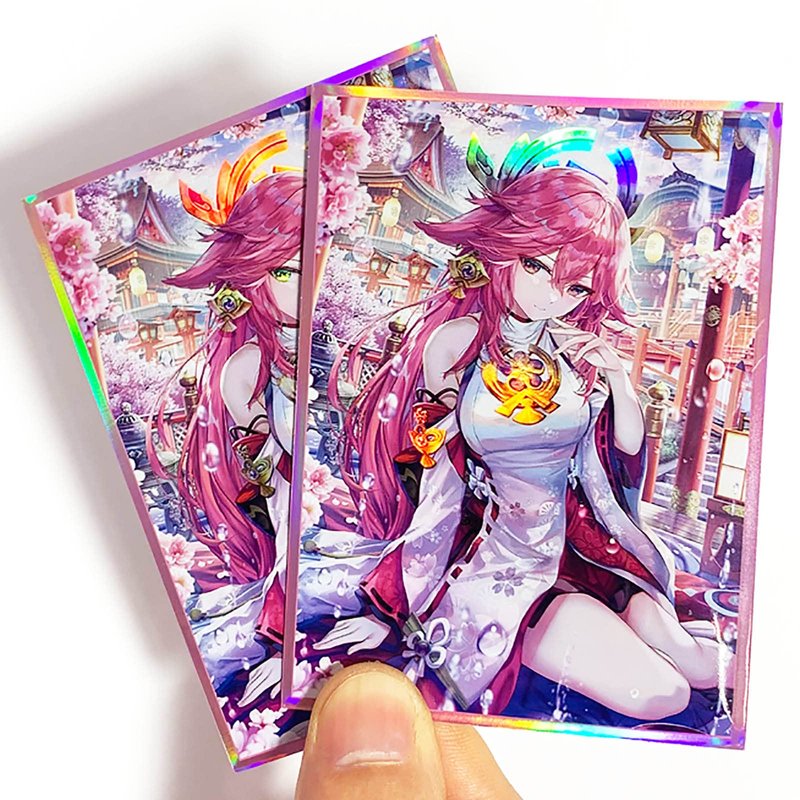 60ct (Yae Miko) 67x 92 mm Holographic Flashing Top Loading Trading Card Sleeves Deck Protector for MTG/TCG/PTCG Art Anime Printing Card Sleeves Protectors
