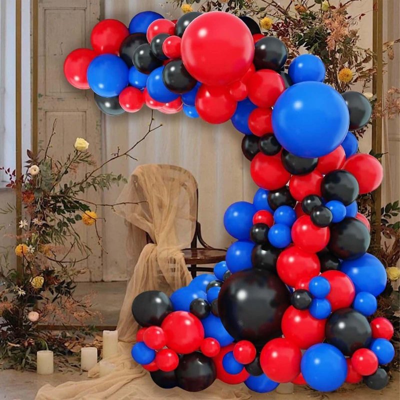 60PCS Blue Red and Black Balloons,Blue Red and Black Balloon Arch Kit Red Black and Blue Birthday Decorations,Suitable for Hero Party Birthday Shower Graduation Party Decorations