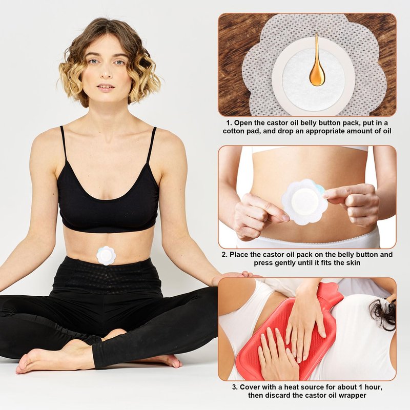 - Simple to Use: Simply open the wrap, insert the cotton pad, apply the desired amount of castor oil, and place the wrap on you. Press gently to ensure a secure fit. The leak-proof and self-adhesive design ensures you can use them confidently without worrying about staining your clothes.