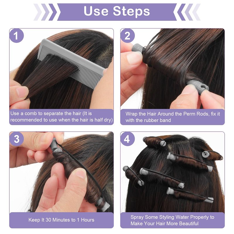 - ✄Solid and reliable: The exquisite cover design and rubber band, Fix the hair firmly on the perm stick, prevents the hair from falling off and makes the hair more curly, natural effect, Fast shaping.