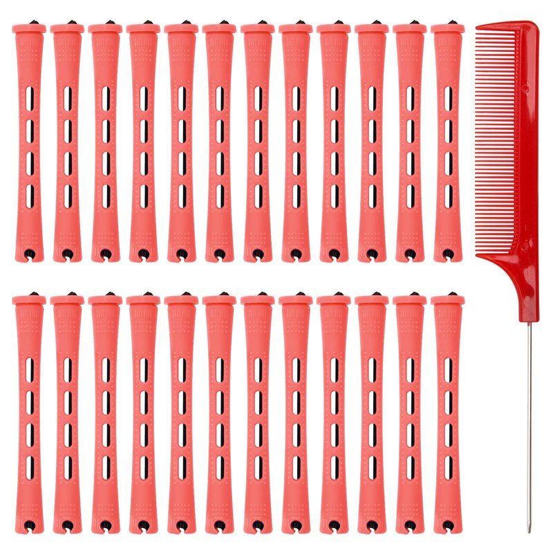 60PCS Hair Perm Rods Set Coolrunner Cold Wave Curlers Perming Rods Plastic Curler Perm Rods with Steel Pintail Comb, DIY Hair Curler Styling Tools for Hairdressing Hair (0.9cm, Blue) (0.9CM) (Red)