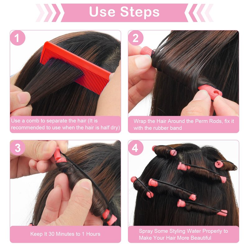- ✄Solid and reliable: The exquisite cover design and rubber band, Fix the hair firmly on the perm stick, prevents the hair from falling off and makes the hair more curly, natural effect, Fast shaping.