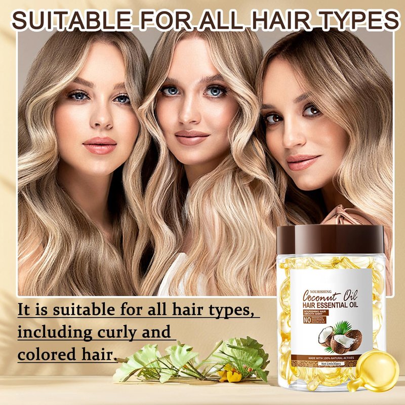 60PCS Hair Serum Oil Capsules, Moisturizing Hair Serum for Frizzy, Dry and Damaged Hair, Smooth, Non-greasy, Refreshing Long Lasting Nourishing Hair Oil for Women(Coconut Oil)