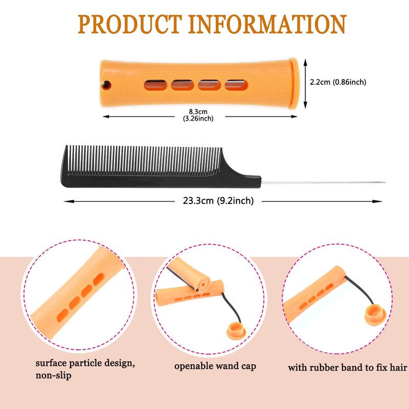 - 🌹【Product Include】: You will receive 60pcs perm rods for hair+A pointed tail comb+ A storage bag,(60pcs orange color size: 2.2cmx8.3cm;) proper size that easy to use and store