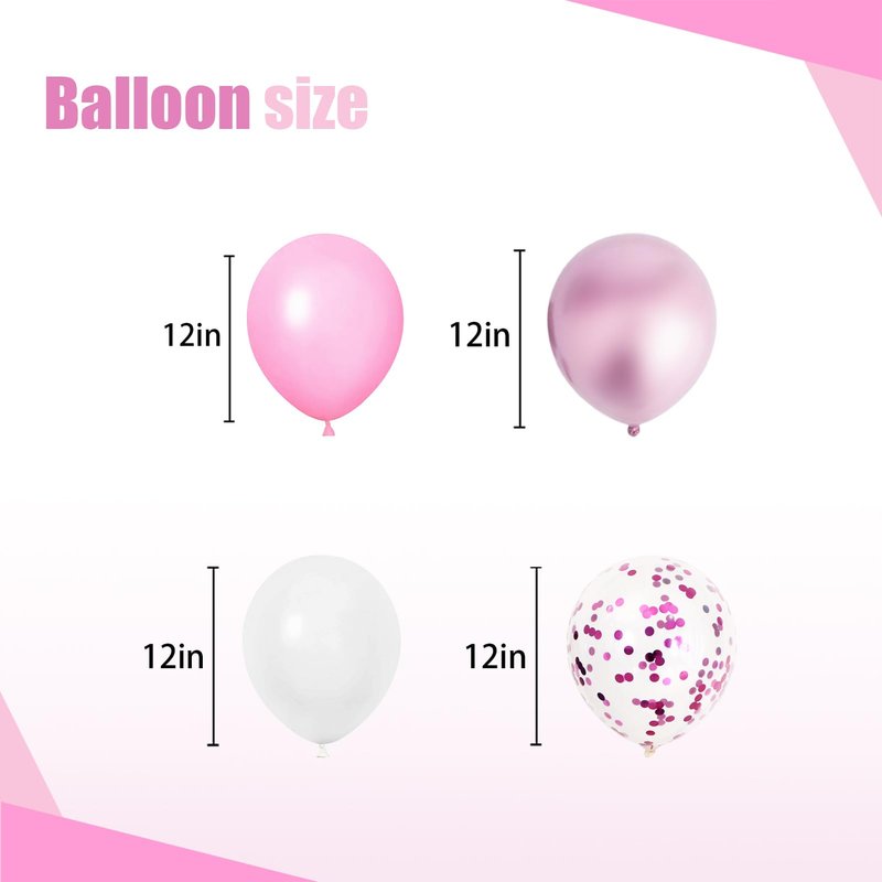 - 【Party Balloons Decorations Set】Our balloon decorations set includes 30PCS 12IN Pink Balloons,20PCS 12IN White Balloons,10PCS 12IN Pink Confetti Balloons,2 rolls of ribbon. The sufficient number of baloon is enough for you to decorate a unique party and make any dull space full of vitality and joy
