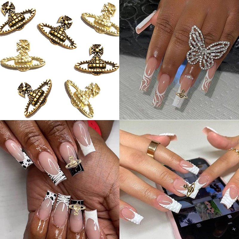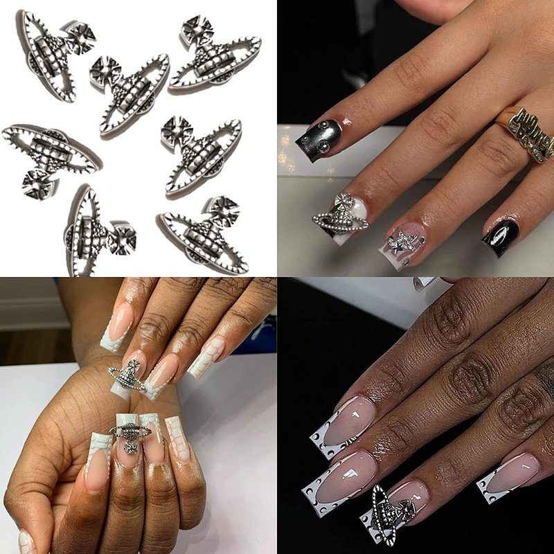 - 💎【Nail Charms for Acrylic Nails】This nail jewels for nail art has a retro design. 6 Styles nail jewels including cross, planet and cross with jewels. Impressed by fashionable women and trend girls.