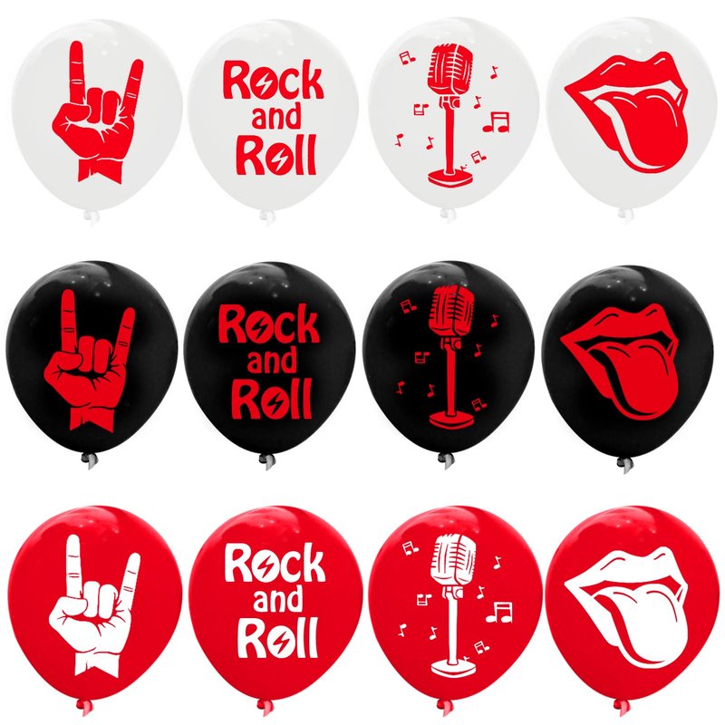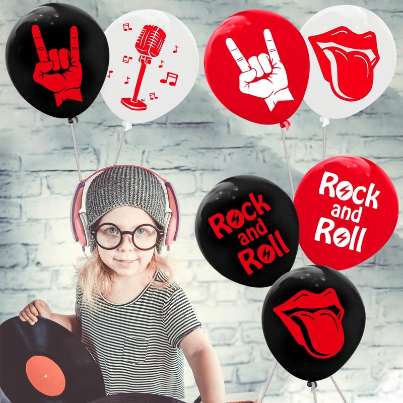 - Package Contents: 60 inflatable rock and roll latex balloons, including black, red, white and 4 different patterns, this quantity is enough to decorate your party.