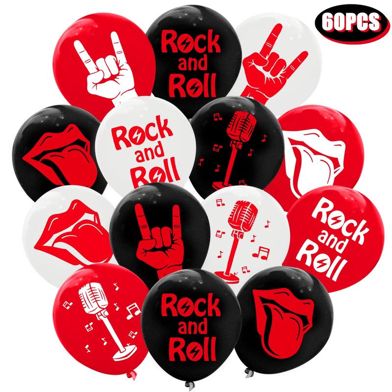 Contents of the package: 60 pieces of rock and roll theme balloons.